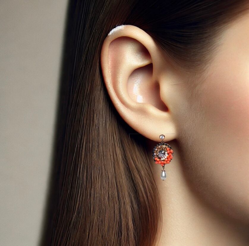 • フォーマルスタイル: ダークグリーンやブラックのドレスに組み合わせると、ピアスの鮮やかな色味が引き立ち、華やかな印象を与えます。